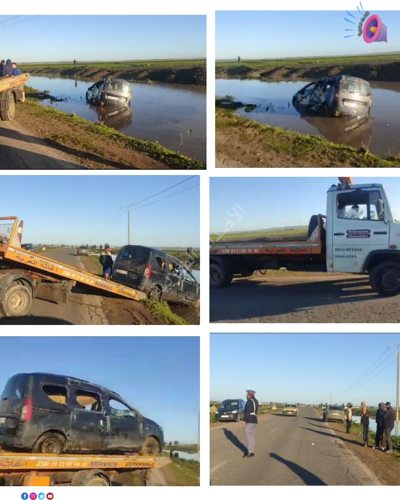 على الطريق الجهوي رقم 27 بين مولاي بوسلهام وسوق الأربعاء الغرب، صباح الجمعة 20 فبراير، فقد سائق سيارة خفيفة من نوع “داسيا دوكير” السيطرة على مركبته بعد سقوط إحدى عجلاتها في حفرة، ما أدى لانقلاب السيارة وانجرافها إلى مجرى مائي بجانب الطريق.