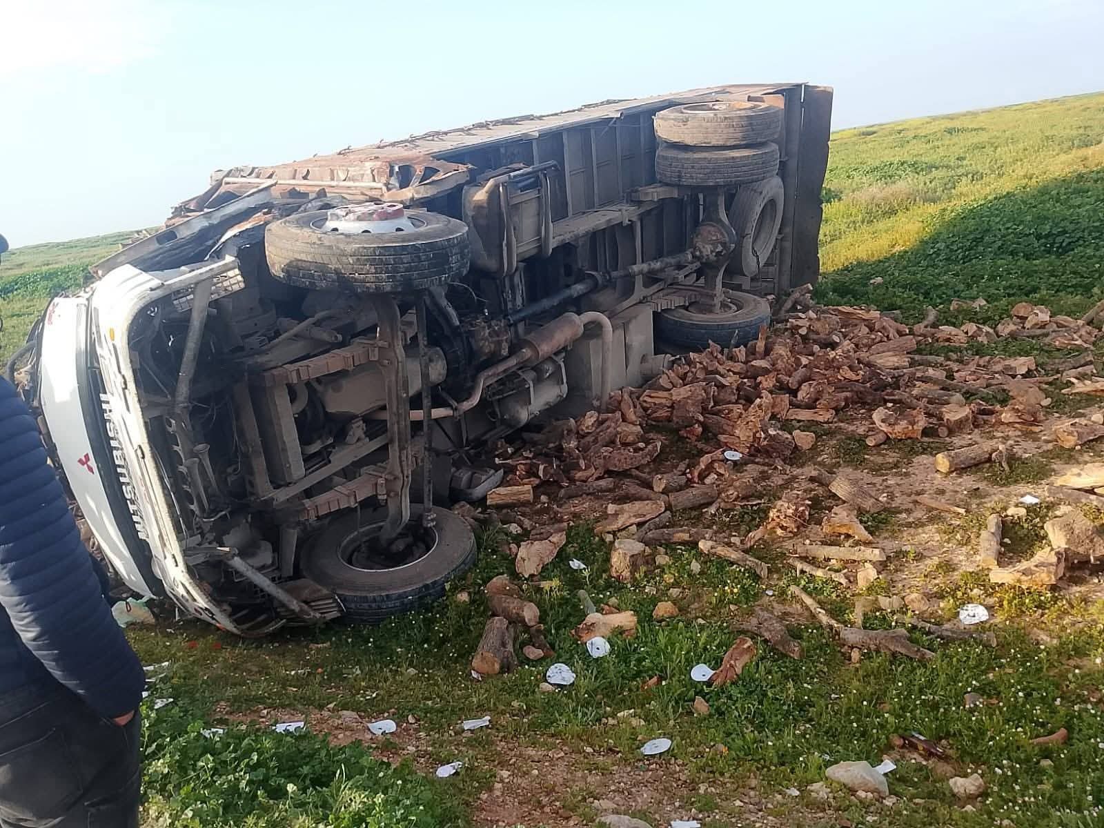 انقلاب شاحنة محمّلة بالحطب بين بني خلوق وكيسر ( صور )