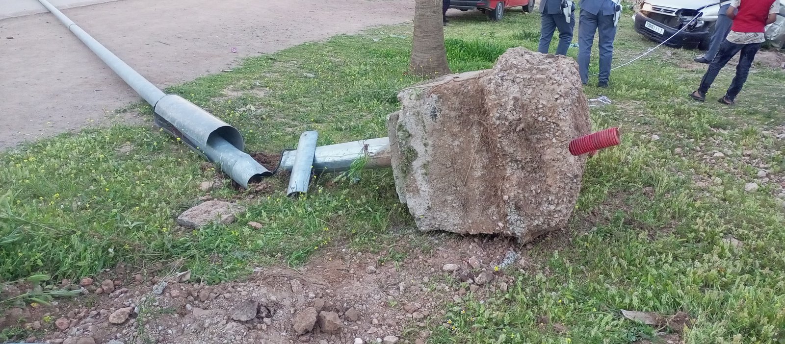 وحسب المعطيات المتوفرة، فقد اصطدمت سيارة خفيفة بشكل عنيف بعمود للإنارة العمومية، ما أدى إلى اقتلاع العمود من مكانه نتيجة قوة الاصطدام، في مشهد يعكس خطورة الحادث وشدته.