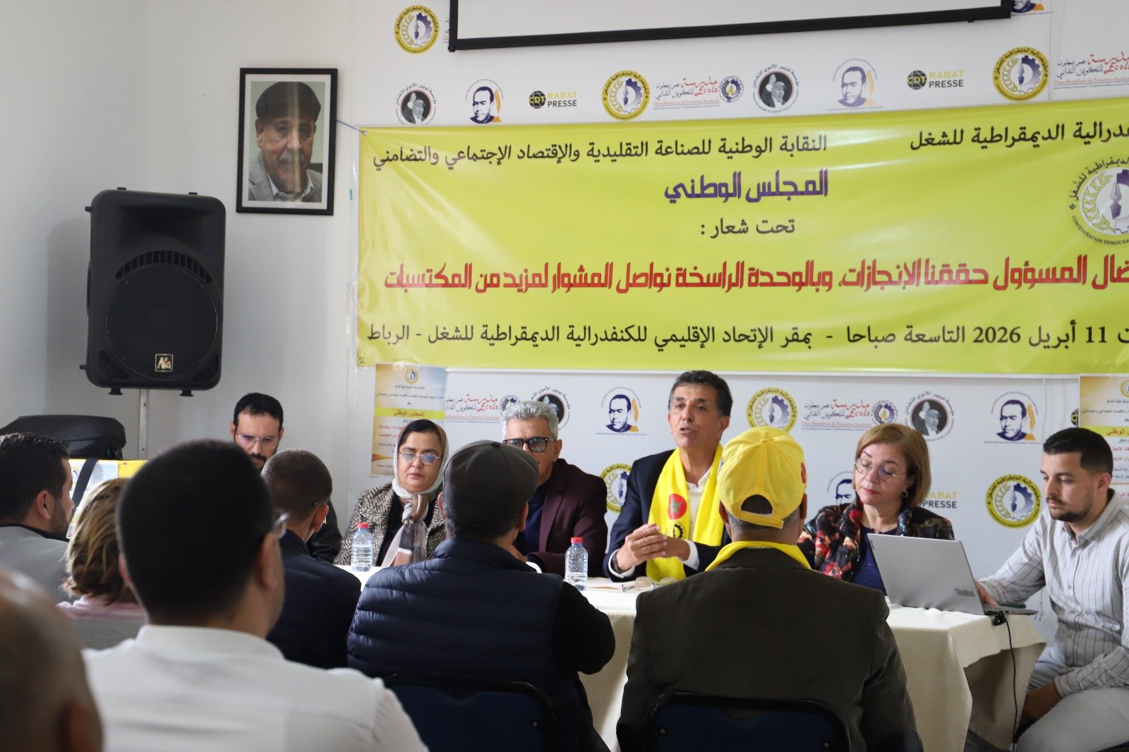 انعقد بمدينة الرباط المجلس الوطني الموسع للنقابة الوطنية للصناعة التقليدية والاقتصاد الاجتماعي والتضامني، المنضوية تحت لواء الكونفدرالية الديمقراطية للشغل، في دورته الخامسة بتاريخ 11 أبريل 2026. وشكلت هذه المحطة التنظيمية مناسبة لتقييم المرحلة الراهنة ورسم آفاق العمل النقابي في ظل التحديات التي يعرفها القطاع.