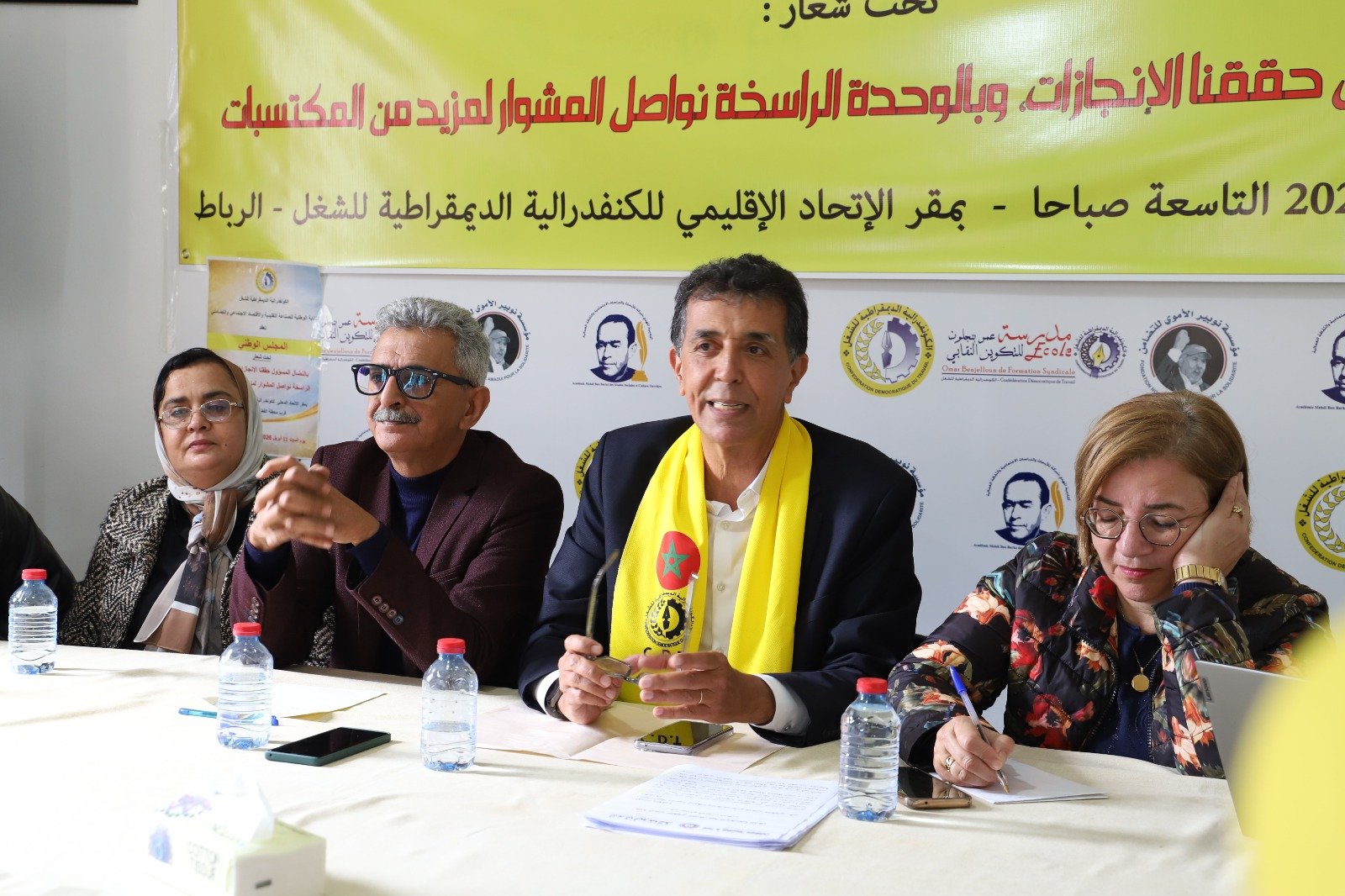 وافتتح المجلس أشغاله بالتعبير عن التضامن مع ضحايا الحرب من المدنيين، قبل أن يتطرق الكاتب العام للنقابة إلى مخرجات المؤتمر الوطني السابع للمركزية النقابية، مشيداً بالدينامية الجديدة والتنسيق النقابي الثلاثي الذي يعزز النضال الوحدوي من أجل الحقوق المشروعة للشغيلة.